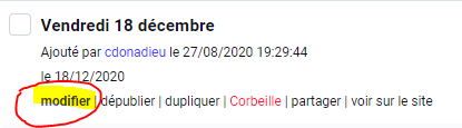 >> Pour modifier une date, cliquer sous la date sur "modifier" :